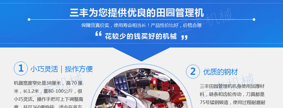 服務周到,不多花一分錢,細致周到的服務和可靠的信譽贏得客戶。田園管理機產品的各項指標已 達到國內外同類產品的先進水平。